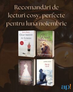 Luna noiembrie ne invită să ne retragem, să ne liniștim și să redescoperim bucuria lecturii. Fie că alegi o poveste plină de speranță (Chiar înainte de fericire), fie de romantism autentic (Bună, iubire) ori o escapadă în stil vintage (Magazinul Mireselor) sau o introspecție (Du-te cu el) – fiecare dintre aceste titluri de la ACT și Politon reprezintă o alegere excelentă pentru seri cu lumină blândă, o băutură caldă și pagini ce te poartă într-un alt univers.